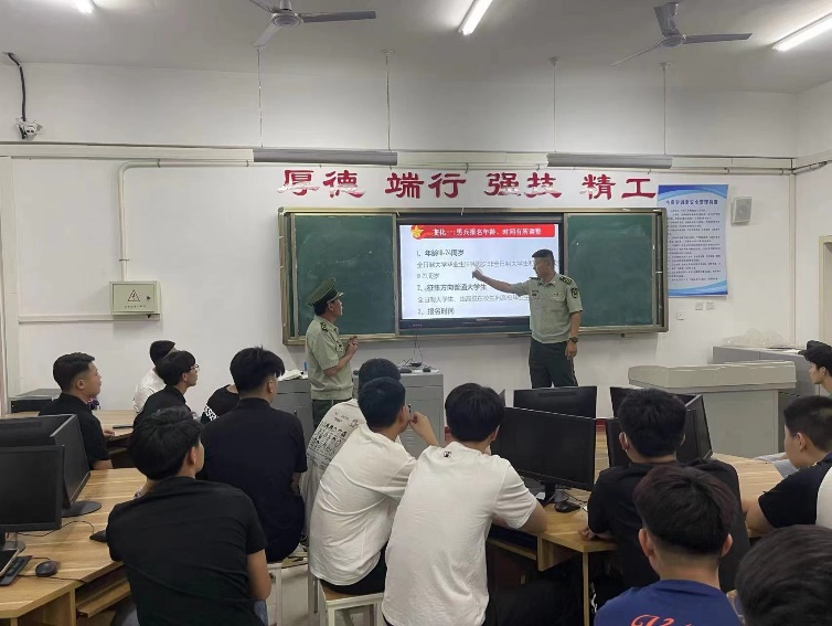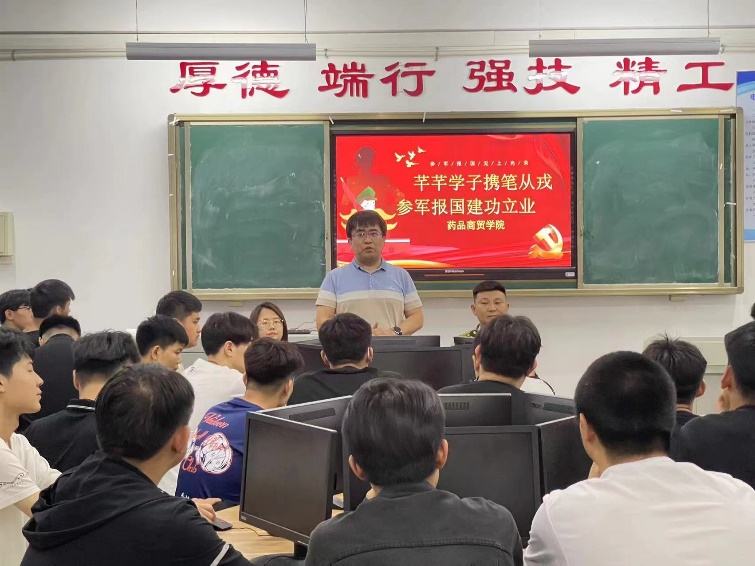 首先,藥品商貿學院副院長王軍做了動員講話。隨后,駐校教官陳陽詳細介紹了征兵入伍的要求、報名方式和注意事項等內容,讓在場學子對軍隊有了更深入的了解。