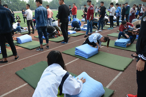 比賽中同學們的“平鋪、橫折、畫線、豎折、修邊、扯角”等各項動作做得有條不絮、得心應手。經過短暫的8分鐘,原本散亂的被子成為了一個個“豆腐塊”,展現在觀眾面前,在場的同學不禁連聲叫好。最后經過八位評委的打分,此次大賽男生隊16中藥6班等3個班級榮獲一等獎,16中制3班等6個班級榮獲二等獎,15中藥9班等9個班級榮獲三等獎;女生隊16中藥8班等3個班級榮獲一等獎,16中藥5班等6個班級榮獲二等獎,15中制5班等9個班級榮獲三等獎。(中藥系)