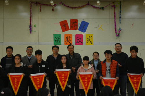 11月10日中藥系在一樓階梯教室成功舉辦了“書法、繪畫、攝影、文明班級”比賽頒獎典禮。學工部部長、中藥系系主任、團總支書記及全體班主任參加了此次活動,并為獲獎的班級、個人頒發了文明班級流動紅旗、榮譽證書及獎品。車主任為活動致辭,贊揚了同學們的展出成果,并鼓勵大家今后創造出更加優秀的作品,于主任作了活動總結發言。