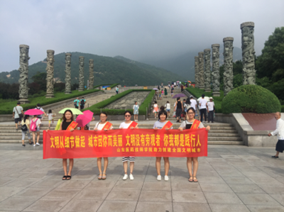 本次活動旨在倡導文明旅游,中藥系的老師和同學們在景區志愿為游客作向導,還向各地游客贈送山東醫藥技師學院自制的驅蚊香囊,為創建全國文明城市奉獻自己的力量。