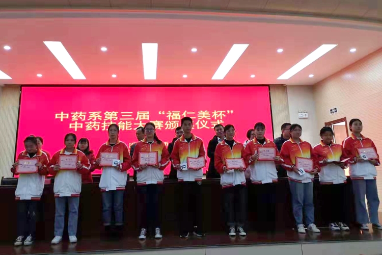 12月12日下午,由中藥系主辦的第三屆“福仁美”杯中藥技能大賽頒獎儀式在辦公樓四樓會議室舉行。福仁美大藥房有限公司林國冬總經理、教務處李梅處長、培訓處張開臣主任、中藥系車主任以及相關負責人及班主任老師出席了本次頒獎儀式。