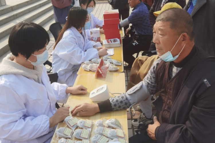 活動分為教師志愿服務組和青年志愿服務組同時進行。教師志愿服務人員在社區廣場開展中醫問診和血壓測量等義診活動。活動現場,社區居民在志愿者的引導下有序進行測量血壓和中醫問診,教師志愿者熱情接待每位前來咨詢的居民,并對他們提出的問題進行一一解答,尤其是對常見的老年病從生活方式、用藥規范、健康鍛煉、營養保健、健康養生等方面提出針對性的指導意見,還贈送了自制的中藥足浴包,受到了居民的一致好評。