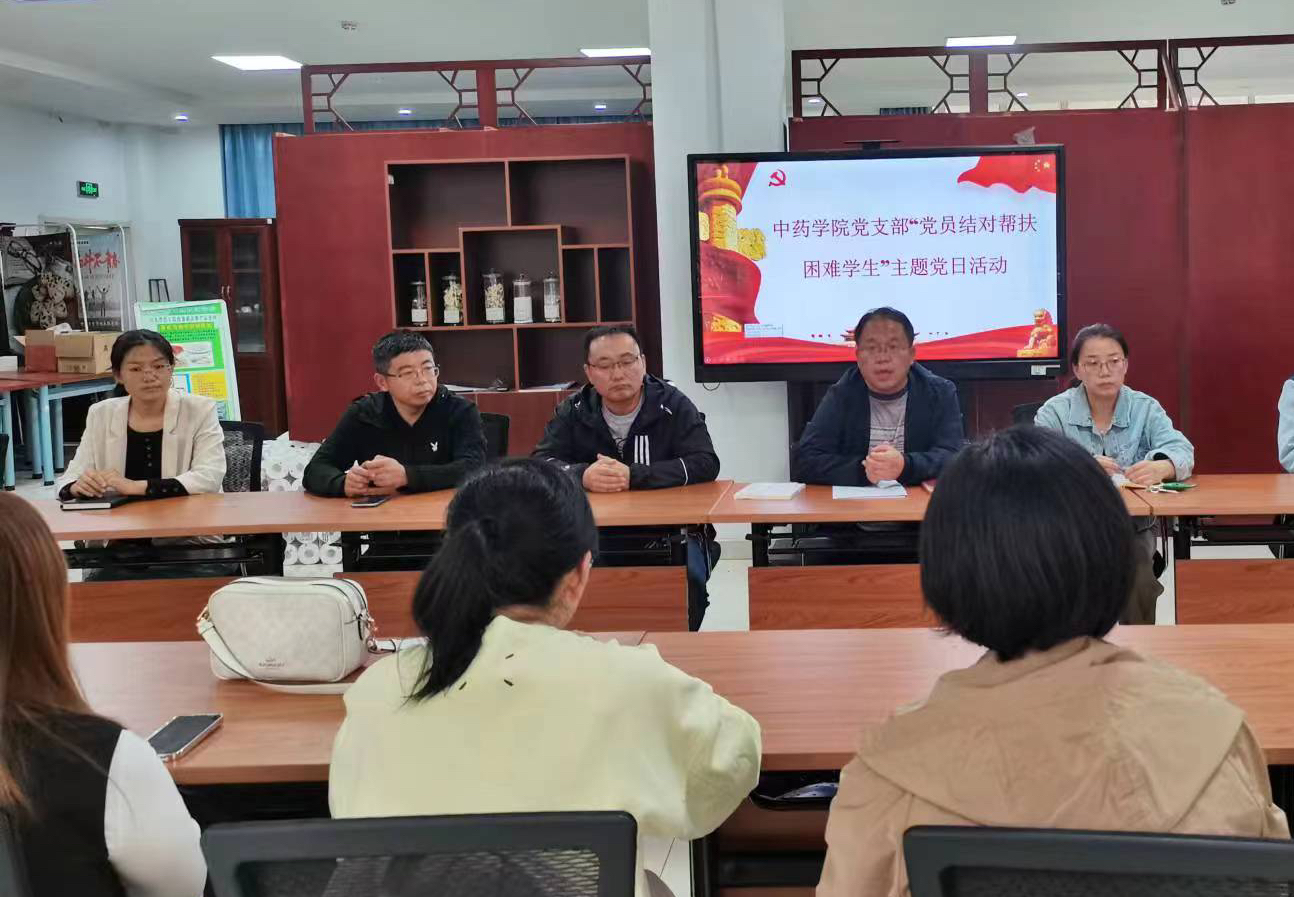 為全面貫徹黨的教育方針,落實立德樹人根本任務,充分發揮黨員教師的先鋒模范作用,讓每一個貧困學生都能夠沐浴到黨的溫暖,助力其成長成才,中藥學院黨支部于10月19日在H樓大師工作站開展了“黨員結對幫扶困難學生”主題黨日活動。中藥學院黨支部書記王育虎、黨員教師以及困難學生代表參加此次活動。