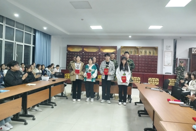 會上,中藥學院教官高慎寶匯報了新學期開學以來的學生會工作,并宣讀中藥學院優秀學生會干部名單。中藥學院黨支部書記王育虎、學院半軍事化管理團長陳陽以及其他參會教官共同為優秀學生干部頒獎。